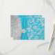 Turquoise and Silver Damask Quinceanera RSVP Card
