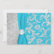 Turquoise and Silver Damask Wedding Invitation