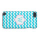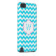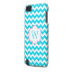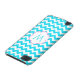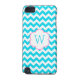 Pretty baby colours in a turquoise and white chevron pattern with a white and pink edged flower in the centre. Add your initial to this cute case.