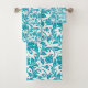 Turquoise and White Floral Damask Pattern Bath Towel Set