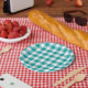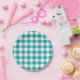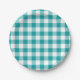 Turquoise and White Gingham Pattern Paper Plate