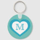 This keychain features a white heart outlined in turquoise blue overlaid by a template monogram initial.