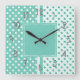 Square Turquoise and White Polka Dot Clock with Silvertone Numbers