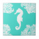 Turquoise And White Seahorse Coastal Pattern Tile