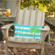 This classic tropical shades of turquoise blue and white wide stripe pillow is a summer staple. Add a colourful palm tree and Aloha and it becomes a tropical vision! You can change the text to whatever you want. A stunning addition to your outdoor living area. Perfect for the pool, beach, garden, ot anywhere you need a tropical vibe. These pillows are also available in indoor fabrics as well as outdoor fabrics, 3 styles/sizes to choose from.