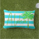 Turquoise and White Stripe Palm Tree Aloha Lumbar Cushion