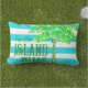Turquoise and White Stripe Palm Tree Island Time Cushion