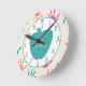 Turquoise Apple Colourful Handprints Teacher Round Clock