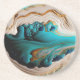 Turquoise Aqua Blue Gold Gemstone Acrylic Pour Art Coaster