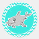 Turquoise, Aqua Colour Chevron; Dolphin Classic Round Sticker