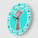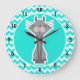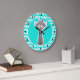 Turquoise, Aqua Colour Chevron; Grey Cat Large Clock