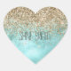 Turquoise Aqua Gold Glam Glitter Sparkle Heart Sticker