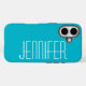 This modern minimalist tough case for the iPhone is a bright, Aqua Blue with giant size white text. Simple, elegant, girly, and chic! Easy to personalise jumbo name, or delete example text. All Rights Reserved © 2024 Alan & Marcia Socolik.