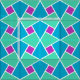 A very colourful, traditional Islamic pattern of Turquoise Blue, Aqua and Purple Geometric Shapes, outlined in White. Part of the Posh & Painterly 'Islamic' collection by Judy Adamson. Use together with other patterns in this collection for eye-catching quilting and other craft or sewing projects.
