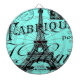 turquoise aqua blue scripts Paris Eiffel Tower home decorations. Vintage chic Parisian home accessories.