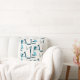 Turquoise Aqua Twirling Lines Print on Off-White Cushion
