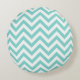 Turquoise Aqua White Large Chevron ZigZag Pattern Round Cushion