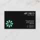 Turquoise Art Deco Flower Symbol - Black Business Card