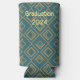 This seltzer can cooler has an art deco design of diamonds and half-diamonds in gold on a field of turquoise. Like this design but want different colours? Message me.