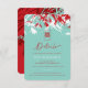 Oriental zen turquoise blue, red and white bamboo leaves with a red/white simple minimalist rectangle double happiness symbol wedding enclosure card. An elegant and stylish chinese / oriental / asian themed wedding design which is modern, simple and classy.