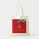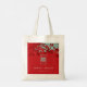 Oriental zen red, turquoise blue and white bamboo leaves with a minimalist double happiness symbol within a simple rectangle frame wedding party favour gift tote bag.