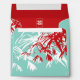 Oriental zen red and turquoise blue bamboo leaves with a minimalist double happiness symbol within a simple rectangle frame wedding envelope. An elegant and stylish asian themed wedding design for the modern and classy couple.