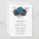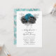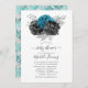 Rustic turquoise (teal), black and silver faux glitter flower online long distance virtual bridal or baby shower invitation with a vintage floral damask pattern reverse customisable to your event specifics.