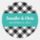 Turquoise Black and White Buffalo Plaid Wedding Classic Round Sticker