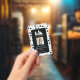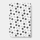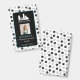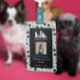 Vertical employee ID badge for a pet grooming business personalised with your business logo, and your employee's photo, name and title, pronouns, and badge number on a paw print pattern background in black and white.