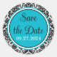 Turquoise, Black, White Damask Wedding Classic Round Sticker