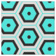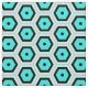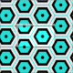 Seamless geometric pattern featuring hexagonal shapes in turquoise and black on a white background.