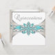 Beautiful teal turquoise blue and silver turquoise Quinceanera party invitation. This elegant ivory and teal blue Quinceanera birthday party design can be easily customised for your party or event.
