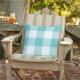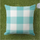 Pillow design features a casual gingham plaid / check pattern that is perfect for summertime! Note, you can customise the turquoise / aqua blue background colour to coordinate with your outdoor decor.
