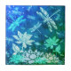 Turquoise Blue Dragonflies Flowers Cearmic Tile