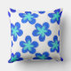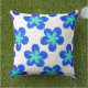 Pillow printed with original acrylic flower pattern in shades of blue on white background.