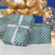 Turquoise Blue Gold Stripes Wrapping Paper