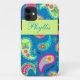 Turquoise Blue Green Modern Paisley Pattern Name Case-Mate iPhone Case