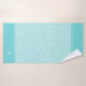 Stylish bath towel set done in turquoise blue and white, with polka dots and chevron patterns decorating the bath towel and the hand towel. The wash cloth is done in a solid turquoise. Personalise the white one letter monogram, on the bath towel to suit your needs.