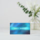 An eye-catching business card featuring a blue turquoise abstract design with a stylish bar. On the back is an optional and easy to customise QR code template. This artistic business card is customisable for any profession.
