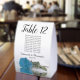Turquoise Blue Rose Wedding Number Seating Chart