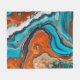 Turquoise blue, rust and gold paint abstract fleece blanket