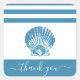 Feel and share the coastal vibes any time you use this beautiful, chic, simple, vintage, custom thank you sticker. A graphic, teal blue vintage seashell overlays a white background accented with nautical teal blue stripes. Personalise with your custom message or name if you want. Proudly use this on envelopes, goody bags, and whatever else you want to personalise! Makes a stylish statement every time you use it.