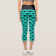 Turquoise blue shark fish pattern high waist Capri Leggings. Custom colour tights with animal print. Great for summer party, boating, sailing, yachting, fishing, yoga, sports and more.