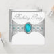 Beautiful teal turquoise blue and silver jewel turquoise birthday party invitation. This elegant design can be easily customised for your party or event. Add your details to the front and/or back by simply choosing the orange "Customise it!" button to begin adding your event details, font style, font size & colour, and wording. Please note - all of the invitation designs you will find on Zazzle are printed graphics on flat paper stock with no actual jewels, bows, raised, embossed, or added parts or pieces.