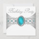 Turquoise Blue Silver Birthday Party Invitations