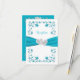This romantic white and turquoise blue floral wedding reception enclosure card has an image of a pair of joined hearts overtop a teal or turquoise blue ribbon image running across the centre of the card. The backside has a turquoise blue background with your reception details or other information printed in white with a simulated silver floral and vine arch with joined hearts surrounding the wording. If you need any additional matching items, please email your request to niteowlstudio@gmail.com or use the Zazzle chat feature to get in touch.