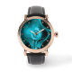 TURQUOISE BLUE TEAL FRACTAL ROSE WATCH