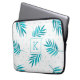 Turquoise-blue tropical leaves pattern laptop sleeve