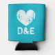 Turquoise blue and white wedding can cooler with cute heart. Vintage design monogrammed with name initial letters of bride and groom. Weathered love symbol with date of marriage on back side. Make your own wedding favour / souvenir for guests at your party. Romantic theme beverage holder design. Perfect for alcoholic drinks like beer. Also available for bottles. Change the quantity to get the cheapest price per cooler.