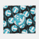 This cute and sporty volleyball fleece blanket features a large turquoise blue and white artsy, stylised volleyball, upon which her name and jersey number can be personalised, overlying a pattern of smaller turquoise and white volleyballs and the sporty font text "I love volleyball" that stretches between the angled rows of volleyballs - background is customisable black - by katz_d_zynes